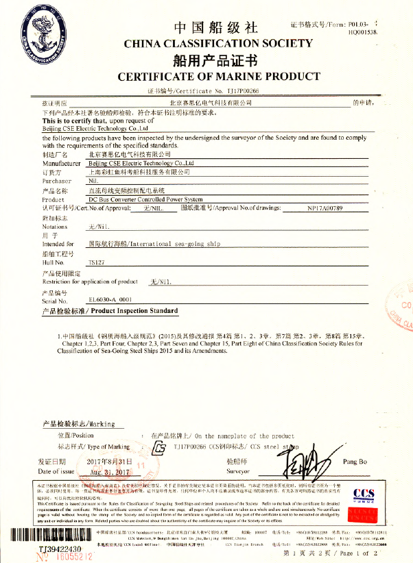 隨著首船合同的順利執(zhí)行,汾西重工的直流組網(wǎng)系統(tǒng)在2016年8月通過中國(guó)船級(jí)社規(guī)范所的原則性認(rèn)可,從技術(shù)路線、認(rèn)證方法上確定了直流組網(wǎng)系統(tǒng)對(duì)于船級(jí)社標(biāo)準(zhǔn)的符合性,為后續(xù)系統(tǒng)迅速通過船檢并搶占市場(chǎng)奠定良好基礎(chǔ)。